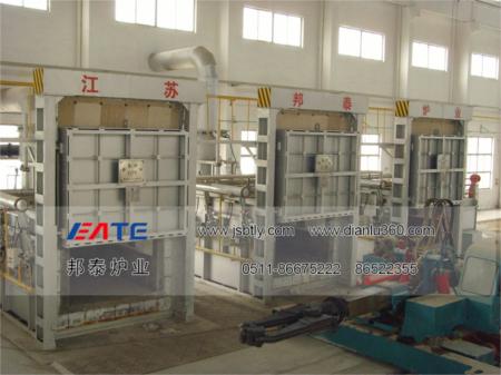 本套淬火機(jī)組有多臺鐘罩式電阻爐與一臺淬火操作車組合為一個(gè)快速淬火機(jī)組生產(chǎn)線,一個(gè)機(jī)組可以根據(jù)用戶的產(chǎn)量和工藝要求配套幾臺不同的爐型,爐子的數(shù)量和爐型可以自由組合,本生產(chǎn)線可滿足不同的生產(chǎn)工藝如:淬火、回火、退火、調(diào)質(zhì)等熱處理工藝,爐溫有1200℃,950℃,700℃等,每條生產(chǎn)線配有一臺快速下水淬火操作車,該操作車可上下、左右、前后六個(gè)方向移動,工件熱處理完成后,操作車迅速進(jìn)入爐內(nèi)將工件從爐膛內(nèi)叉出,并快速落入水池或淬火液池內(nèi),整個(gè)過程在1分鐘內(nèi)完成,生產(chǎn)效率高,操作方便,從而保證了工件的淬火質(zhì)量。