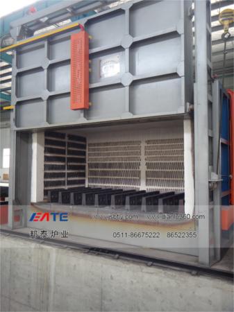 本套淬火機組有多臺鐘罩式電阻爐與一臺淬火操作車組合為一個快速淬火機組生產(chǎn)線,一個機組可以根據(jù)用戶的產(chǎn)量和工藝要求配套幾臺不同的爐型,爐子的數(shù)量和爐型可以自由組合,本生產(chǎn)線可滿足不同的生產(chǎn)工藝如:淬火、回火、退火、調(diào)質(zhì)等熱處理工藝,爐溫有1200℃,950℃,700℃等,每條生產(chǎn)線配有一臺快速下水淬火操作車,該操作車可上下、左右、前后六個方向移動,工件熱處理完成后,操作車迅速進入爐內(nèi)將工件從爐膛內(nèi)叉出,并快速落入水池或淬火液池內(nèi),整個過程在1分鐘內(nèi)完成,生產(chǎn)效率高,操作方便,從而保證了工件的淬火質(zhì)量。