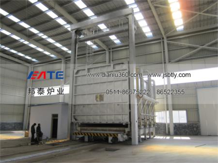 2.燃?xì)馀_車爐主要由爐體、爐襯、爐門、自行走臺車系統(tǒng)、高速燃燒系統(tǒng)、管路及其壓力自控系統(tǒng)、爐壓自控及排煙余熱回收系統(tǒng)、密封裝置、溫度控制及記錄系統(tǒng)、計(jì)算機(jī)系統(tǒng)等主要部分組成。設(shè)備以各式燃燒氣體為介質(zhì),通過的高速燒嘴燃燒加熱,溫度1250℃。
