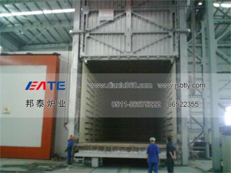 本臺(tái)車(chē)爐由爐體(包括爐襯)、爐門(mén)、爐車(chē)、爐門(mén)起吊機(jī)構(gòu)、爐車(chē)行走機(jī)構(gòu)、加熱元件、溫控系統(tǒng)、溫度記錄等部分組成。