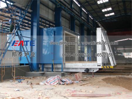 本臺車爐由爐體(包括爐襯)、爐門、爐車、爐門起吊機構(gòu)、爐車行走機構(gòu)、加熱元件、溫控系統(tǒng)、溫度記錄等部分組成。