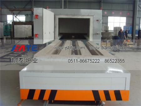 臺(tái)車(chē)是承載工件及運(yùn)轉(zhuǎn)的平臺(tái),主要有臺(tái)車(chē)鋼結(jié)構(gòu)、臺(tái)車(chē)耐火隔熱層、臺(tái)車(chē)行走機(jī)構(gòu)、加熱元件、爐底板等部分組成。
