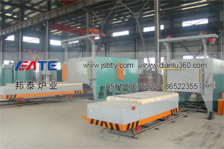 全纖維臺車爐由爐體(包括爐襯)、爐門、爐車、爐門起吊機構(gòu)、爐車行走機構(gòu)、加熱元件、溫控系統(tǒng)、溫度記錄等部分組成。